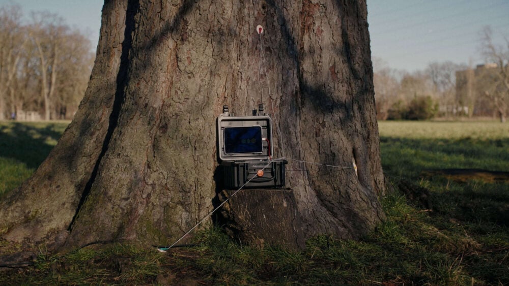 Bioelectrical signals from each tree were transformed into speech through an AI large language model. It was fed insights about the trees’ lifespans and histories, alongside data from biosensors that record metrics such as wind speed, temperature and soil moisture.
