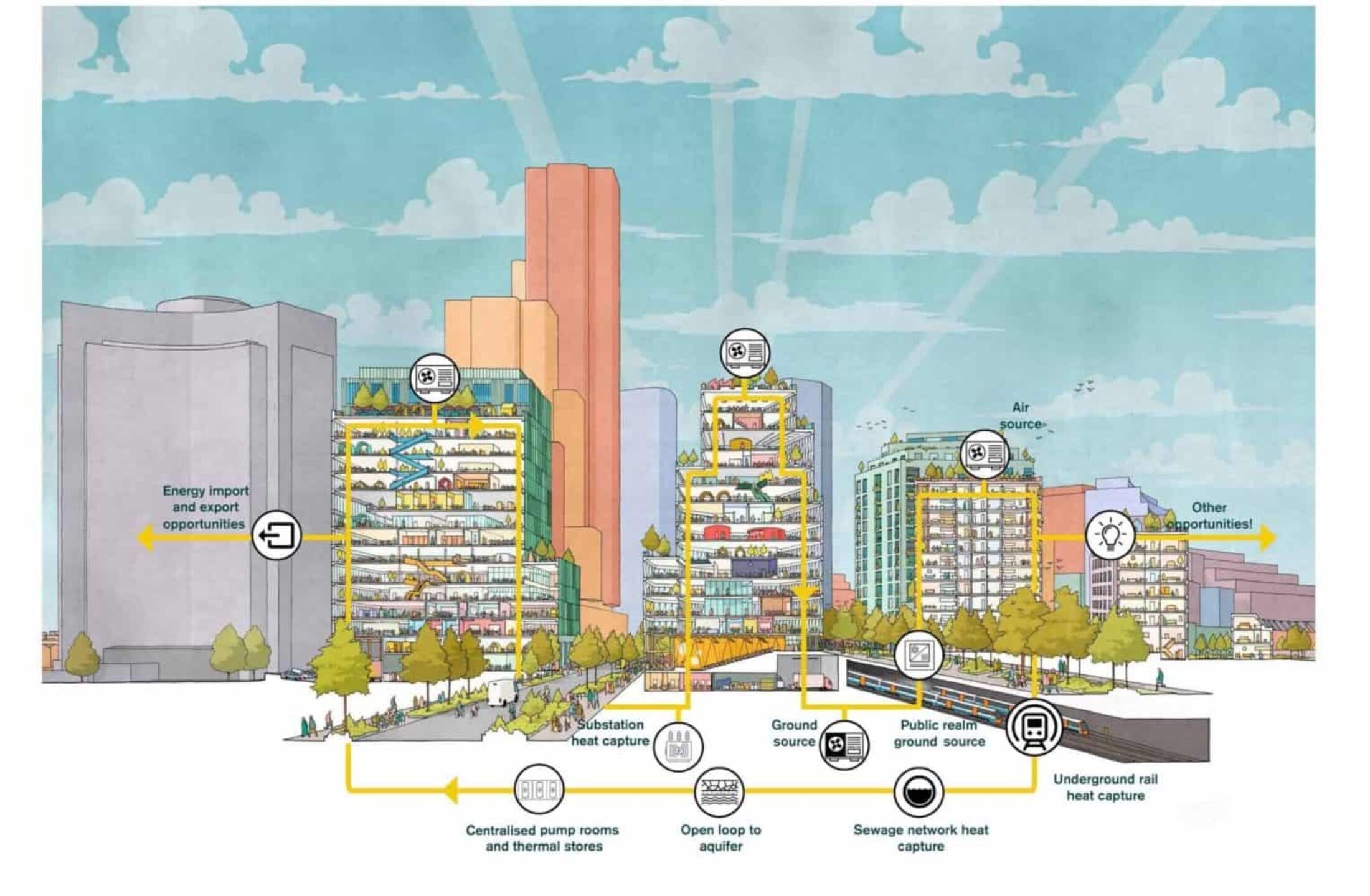 While these loop systems remain relatively new in the UK, smaller versions already operate at developments like One New Change in the City of London. Countries including Sweden and Denmark have deployed district heating far more widely, helped by planning systems more supportive of shared energy infrastructure and by historically higher heating costs that drove innovation.