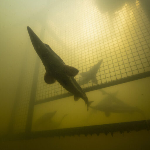 A striking underwater shot of an Atlantic sturgeon swimming free from its cage in Sweden has won an award celebrating rewilding successes in Europe.