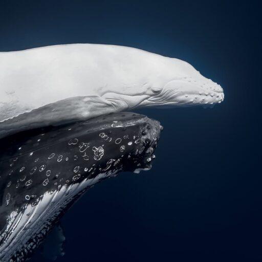 An extraordinary underwater photograph capturing a rare white humpback whale and its mother (pictured) has won the World Nature Photography Awards.