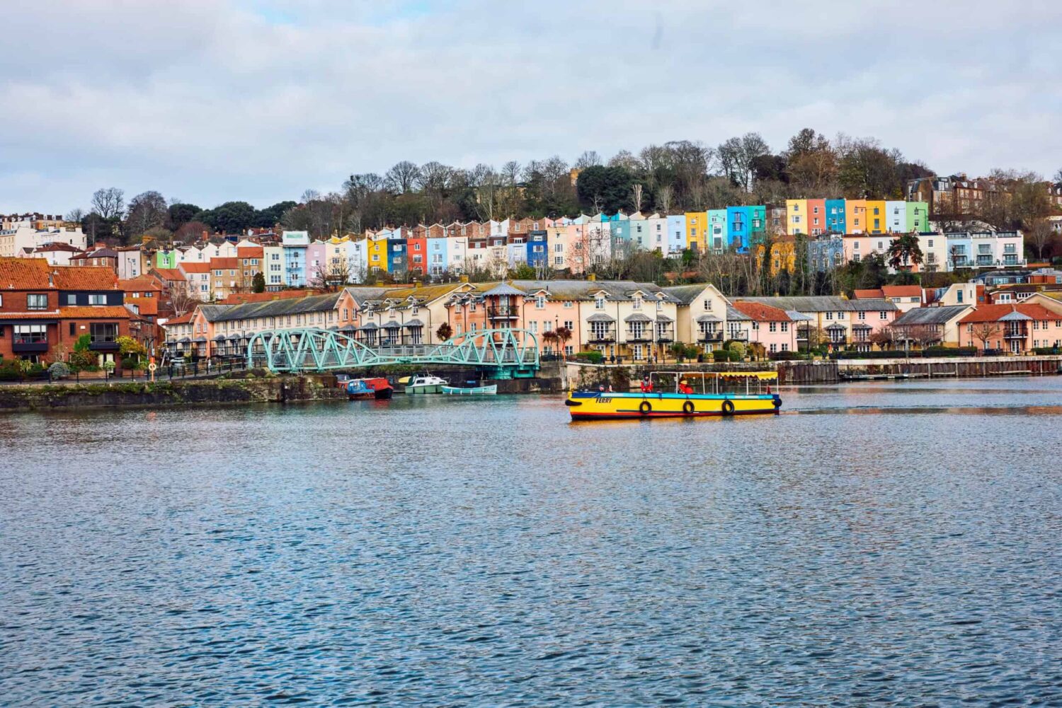 A child waves from a bridge and mallards scatter as our boat glides through Bristol harbour. The city’s colourful buildings reflect in the rippling water, offering a cheerful contrast to the dark clouds racing overhead.